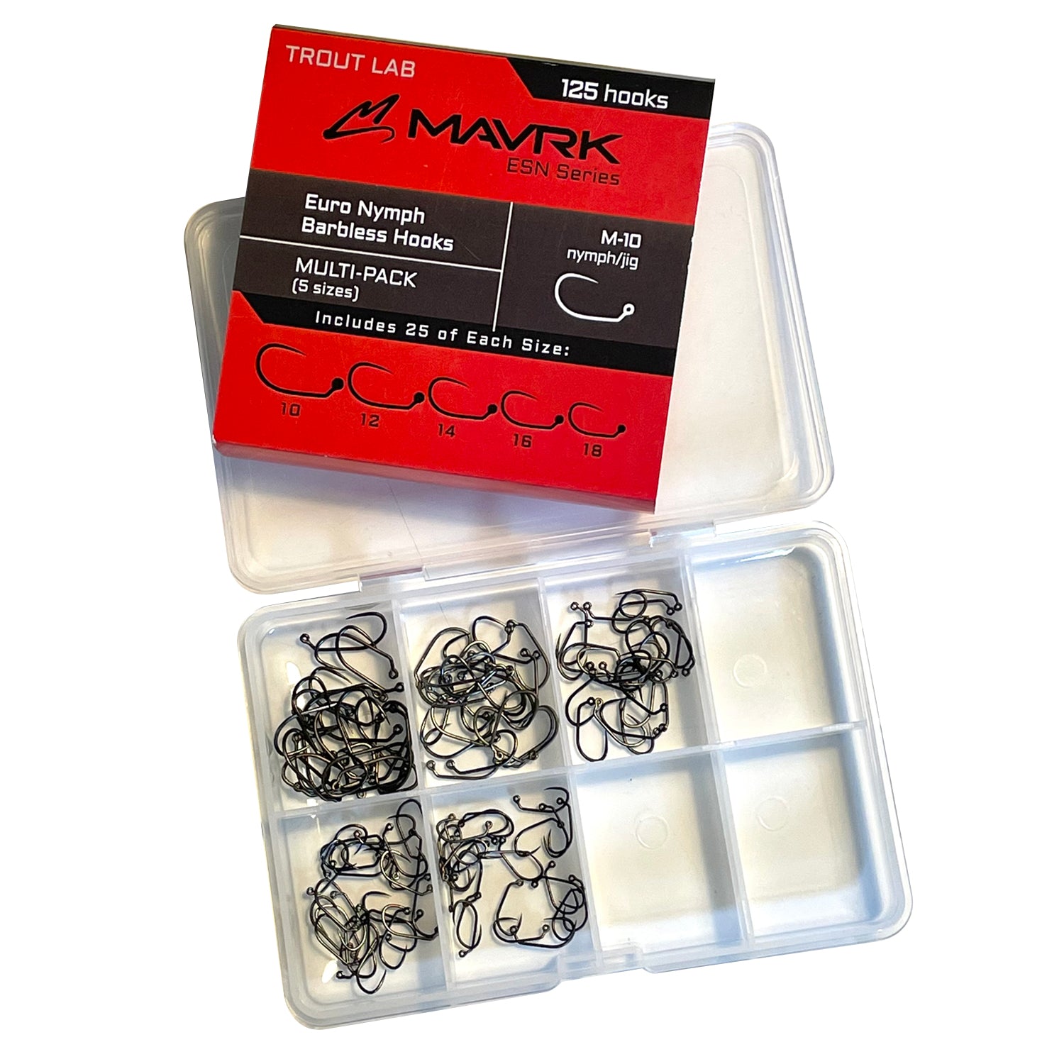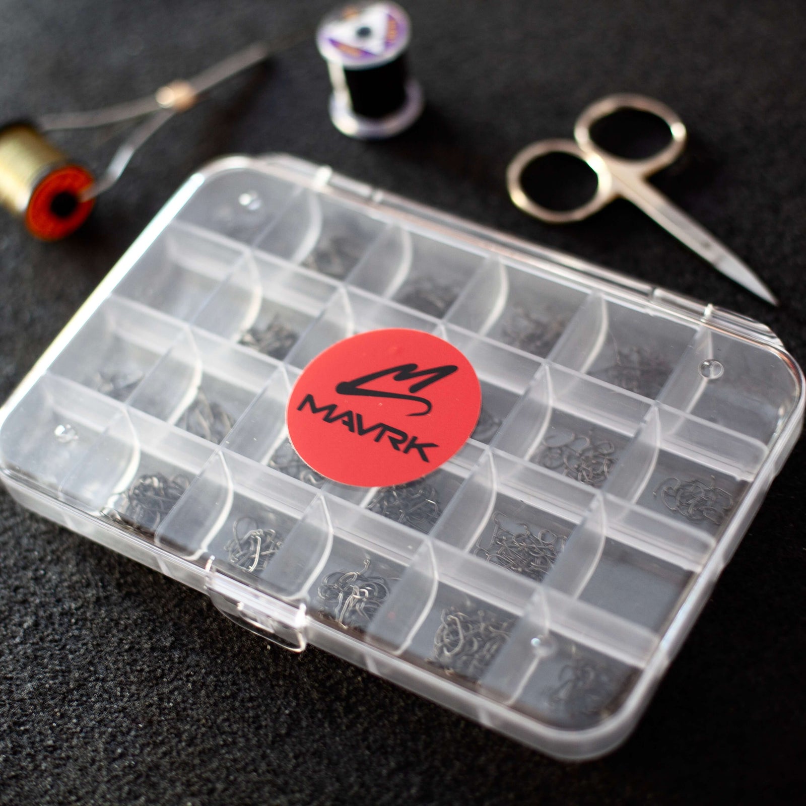 The MAVRK competition hook collection was designed for today’s popular fly patterns that use Jig, Curve, Straight, and Long style hook profiles. This pack contains 25 pieces of all five hook sizes, 125 pieces total. Storage case included.
